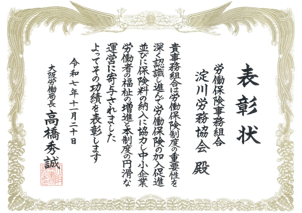 2025.11.20 お知らせ 優良事務組合として表彰を受けました。 令和7年度優良労働保険事務組合として、大阪労働局長より表彰を受けました。 今後も事務組合として適正な運営に取り組んでまいります。 前へ 一覧 次へ その他のお知らせ 2025.12.23 お知らせ 年末年始の休業のご案内 2025.07.22 お知らせ 夏季休業のご案内 2024.12.26 お知らせ 年末年始の休業のご案内 2024.11.11 お知らせ Pマーク10回目更新しました 2024.07.25 お知らせ 夏季休業のご案内 2024.04.01 お知らせ 事務所移転のお知らせ 直近の人気記事 2025.12.23 お知らせ 年末年始の休業のご案内 2025.11.20 お知らせ 優良事務組合として表彰を受けました。